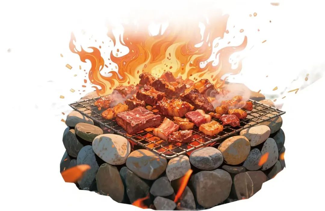 和烤得焦黄的盘肠 在火上翻涌成歌