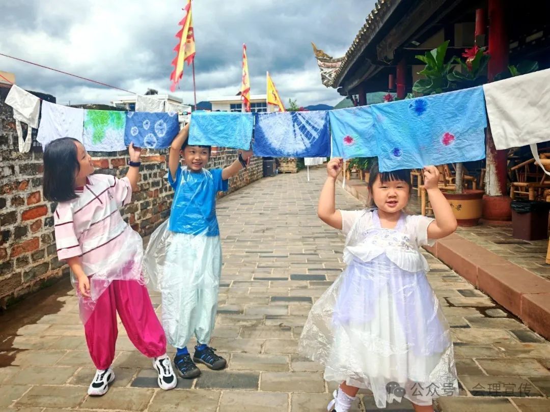 “在城楼上体验扎染,既能欣赏古城风光,又能学习非遗技艺,非常有意义。”与孩子共同体验非遗技艺的外地游客李女士说。“这些五颜六色的颜料在布上发生了奇妙的变化,我们觉得非常有趣。”正在体验扎染的小朋友胡佳琪和毕霆奕兴致勃勃地说。