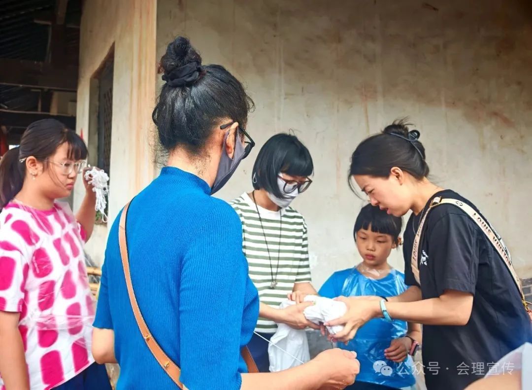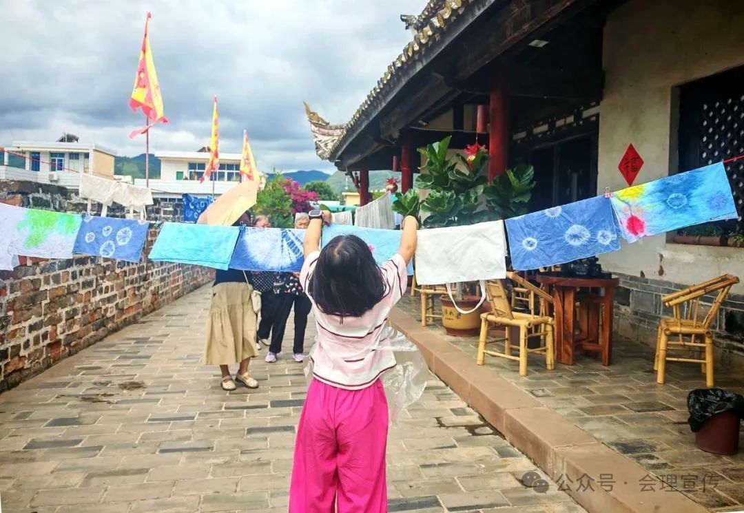 拱极楼作为会理古城的地标性建筑,历史悠久,文化底蕴深厚。艺术坊依托这一独特资源,将非遗扎染技艺与古城特色相结合,打造沉浸式文化体验场景。活动中,扎染老师现场教学,参与者通过捆扎、浸染等步骤,亲手制作出独一无二的扎染作品,感受传统手工艺的魅力。