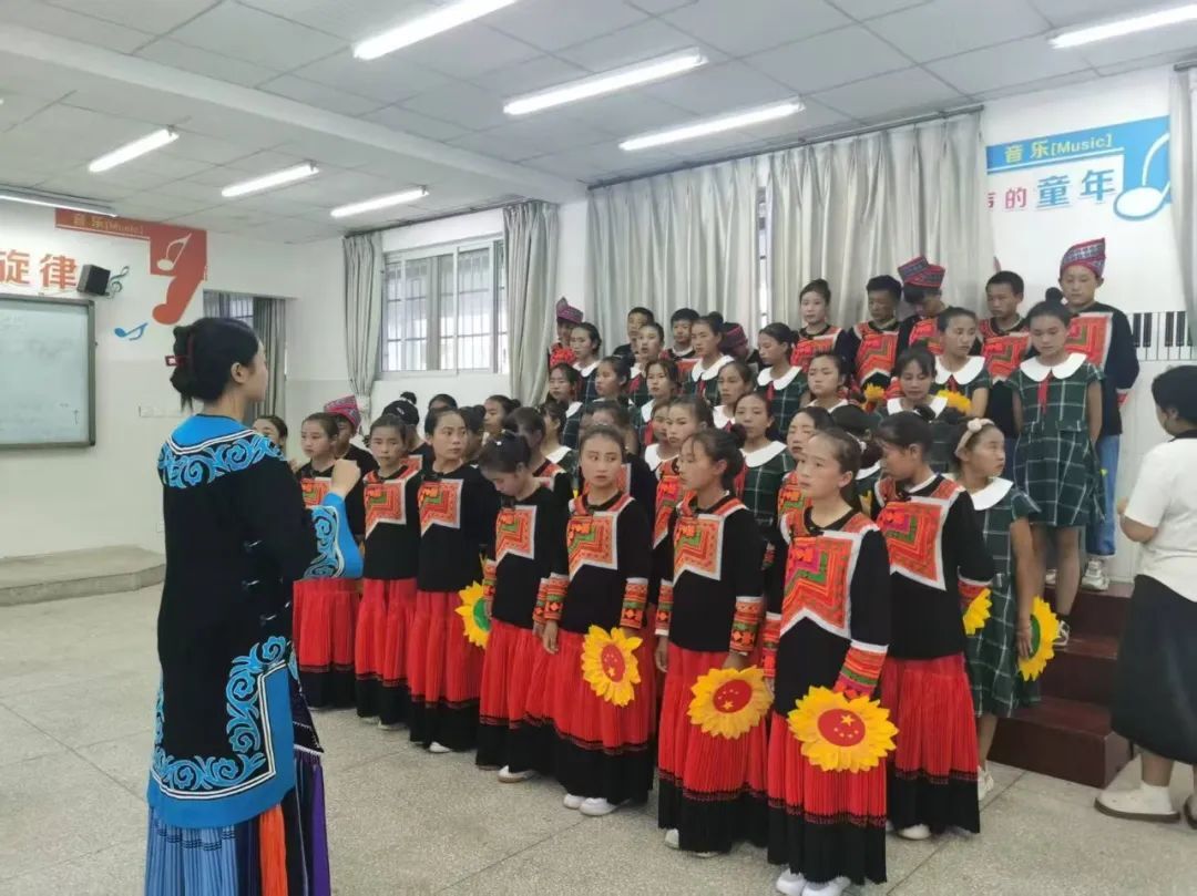 此外,川师大支教师生还为学校创作彝汉双语校歌,通过校园广播站播放;为学校开发彝汉双语校本教材《彝音乡韵》,编写《四川凉山彝族乡土歌谣汇编》;积极开展第二课堂,通过艺术社团开展各项美育活动,包括举办5场专场合唱音乐会,直接受益人2000多人次。2022年,向阳花合唱团获得普格县中小学艺术节合唱比赛一等奖。