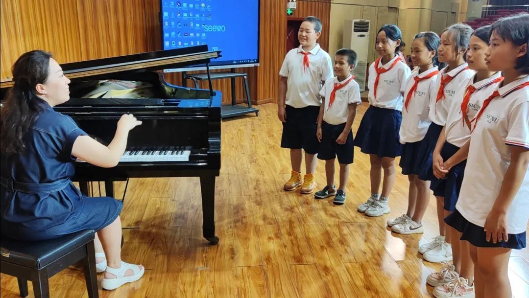郑洁负责为向阳花合唱团选作品,为支教的川师大学生制定排练计划;每天晚上为合唱团排练完,他们都会在一起复盘总结排练中发现的问题,探讨如何解决,“支教的师范生是未来的中小学音乐教师,在支教的过程中,同学们成长很快,积累了宝贵的教学经验。”