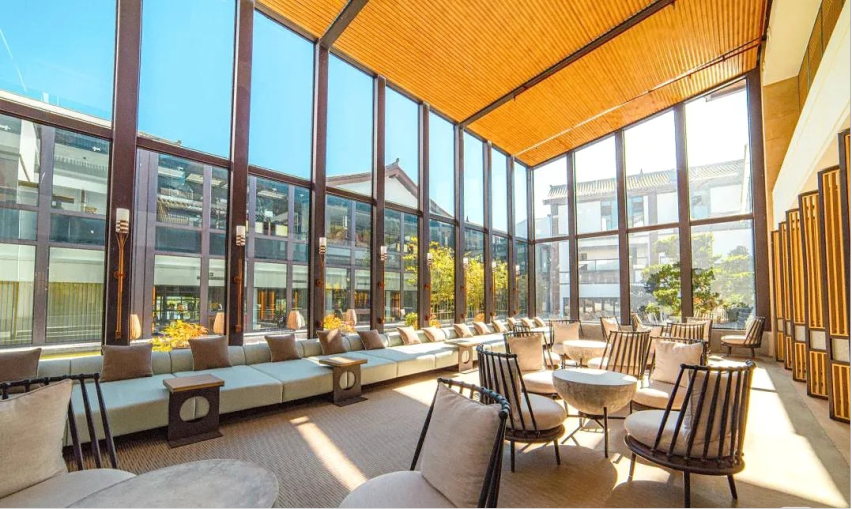 午后最热时光,可以到听涛谷,躲进湖畔玻璃咖啡馆,点杯冰酿咖啡直接“摆烂”!看天上云卷云舒,听窗外蝉鸣热烈……你甚至可以在这里发呆一整天。
