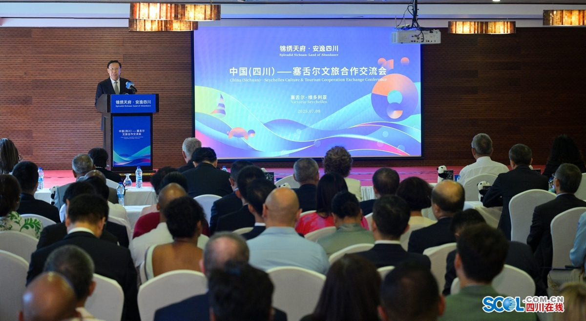 当地时间7月8日,“锦绣天府·安逸四川”中国(四川)—塞舌尔文旅合作交流会在维多利亚市举行。