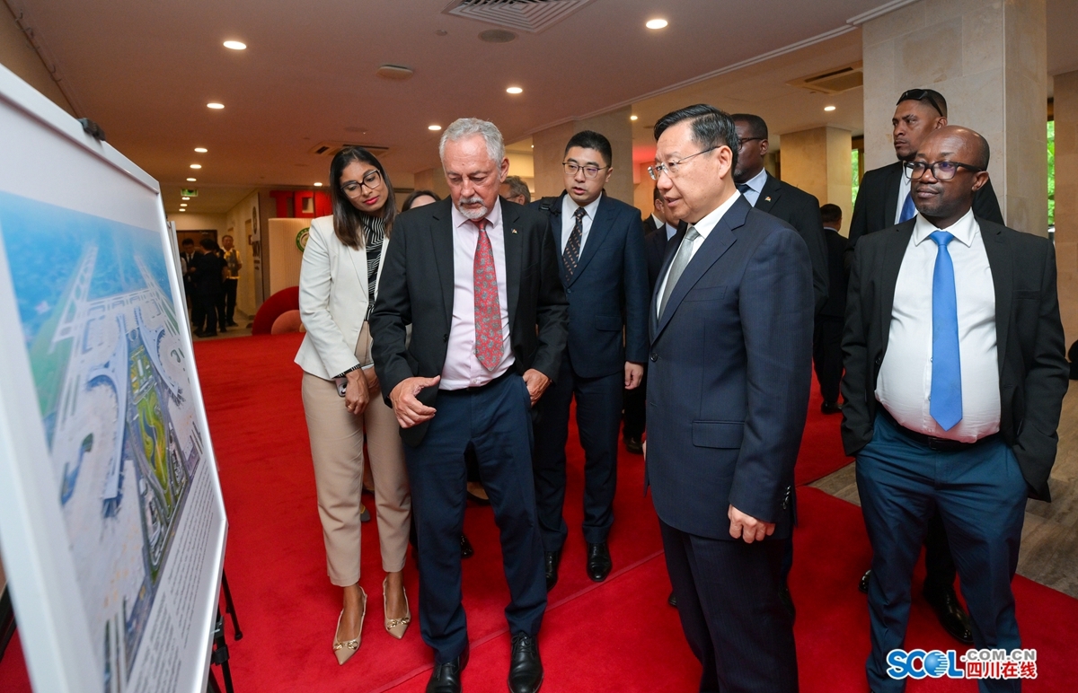 在塞期间,代表团还调研了塞舌尔独立学校,与当地有关嘉宾共同参观四川省情图片展、中医药健康体验区、“川酒全球行”塞舌尔站展及四川非遗文创展。