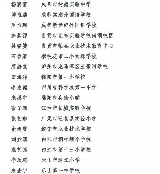 2025年四川省“新时代好少年”名单