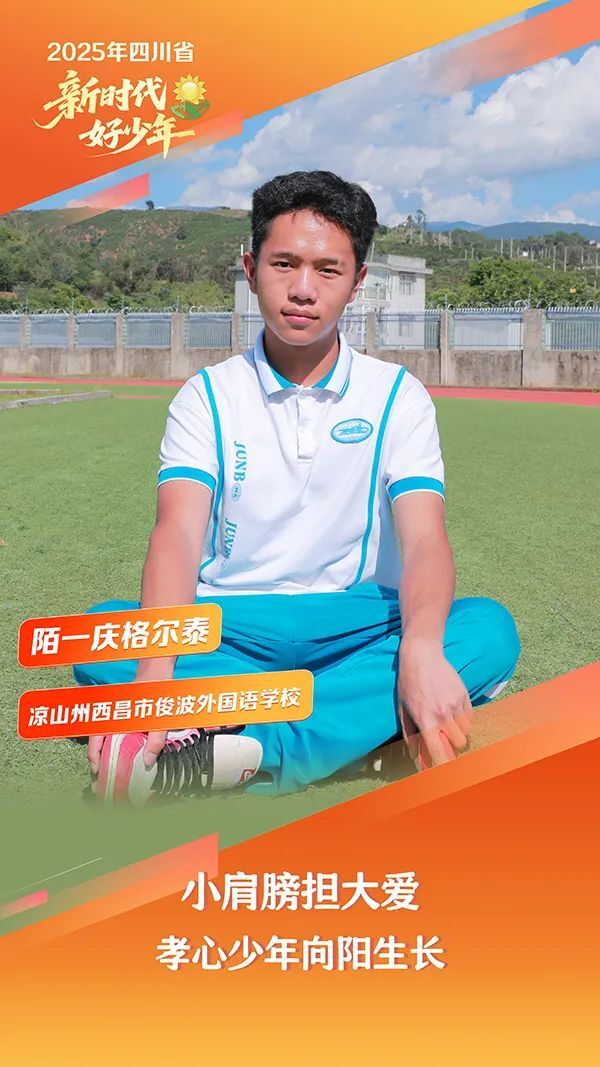 陌一庆格尔泰,男,蒙古族,2008年10月生,凉山州西昌市俊波学校学生。在班级管理中,他调解同学矛盾,维护校园秩序,赢得“贴心班长”美誉;父母异地工作期间,他独立承担家务,长年照顾患病祖母,主动承担接送弟弟的任务;生活中,他热心助人,坚持背行动不便的老人上下楼,多次在公共场所帮扶他人。他综合素质突出,担任校篮球队主力,锤炼团队精神,积极参与校园劳动实践,成为同龄人中的标杆。